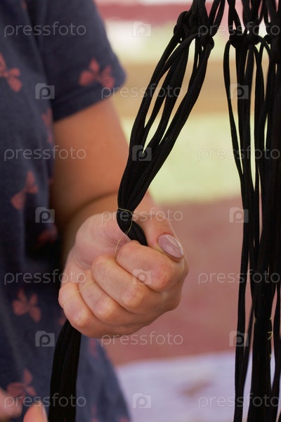 Плетеная сумка для покупок. Женщина плетет авоську