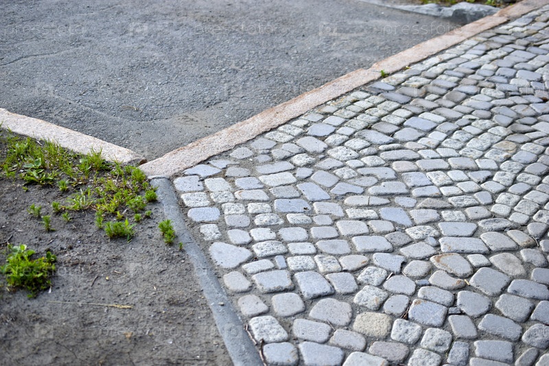 Улица города выложена камнем. Каменная брусчатка. Парковая улица выложена камнем