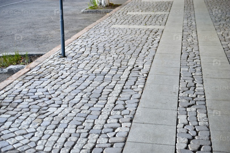 Улица города выложена камнем. Каменная брусчатка. Парковая улица выложена камнем
