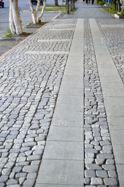 Улица города выложена камнем. Каменная брусчатка. Парковая улица выложена камнем