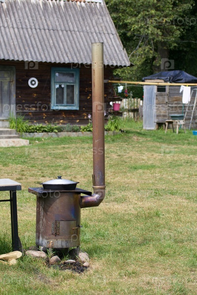 Шашлык и жарить на гриле. Барбекю и печь для приготовления пищи на открытом воздухе. Старый деревянный забор, сельский отдых