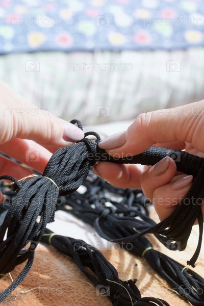 Плетеная сумка для покупок. Женщина плетет авоську