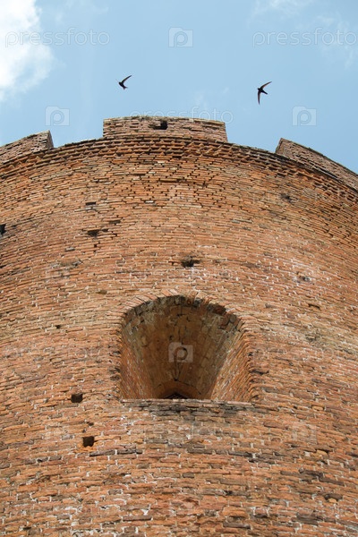 Фрагменты старой крепости. Из красного кирпича. Крепостные лазейки
