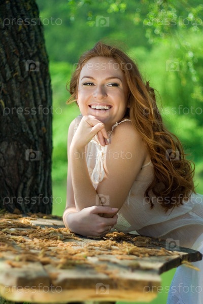 Красивая улыбающаяся девушка в белом платье