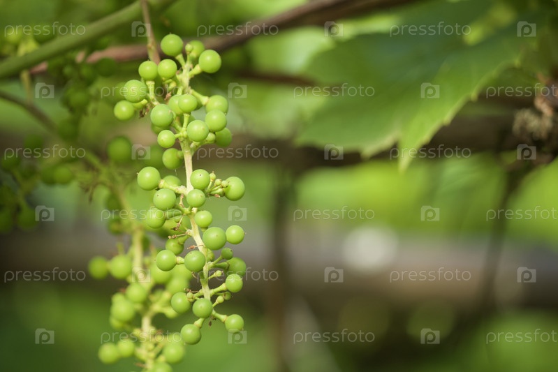 Виноградная гроздь на стадии формирования. Видны мелкие зеленые ягоды