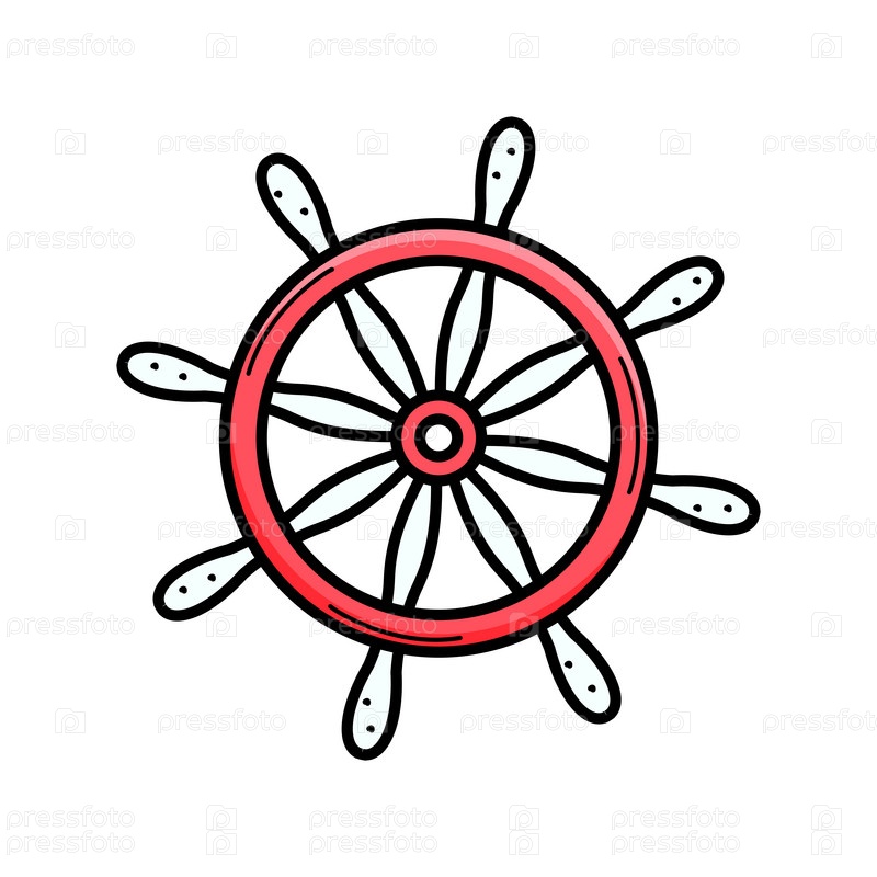 Значок каракули рулевого колеса. Векторная иллюстрация старинного руля корабля. Одноместный, изолированные на белом фоне