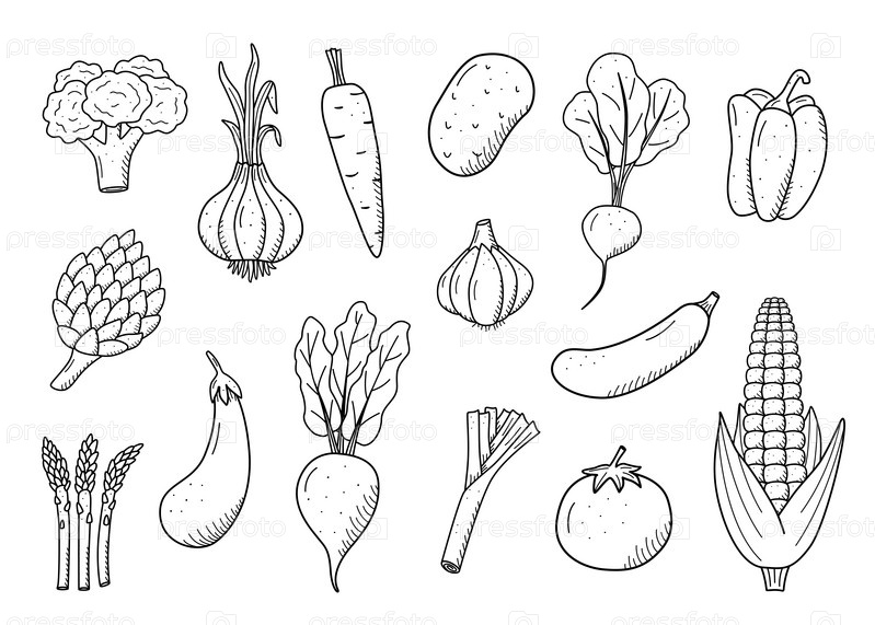 Овощи каракули набор, урожай сезонных натуральных овощей для здорового питания