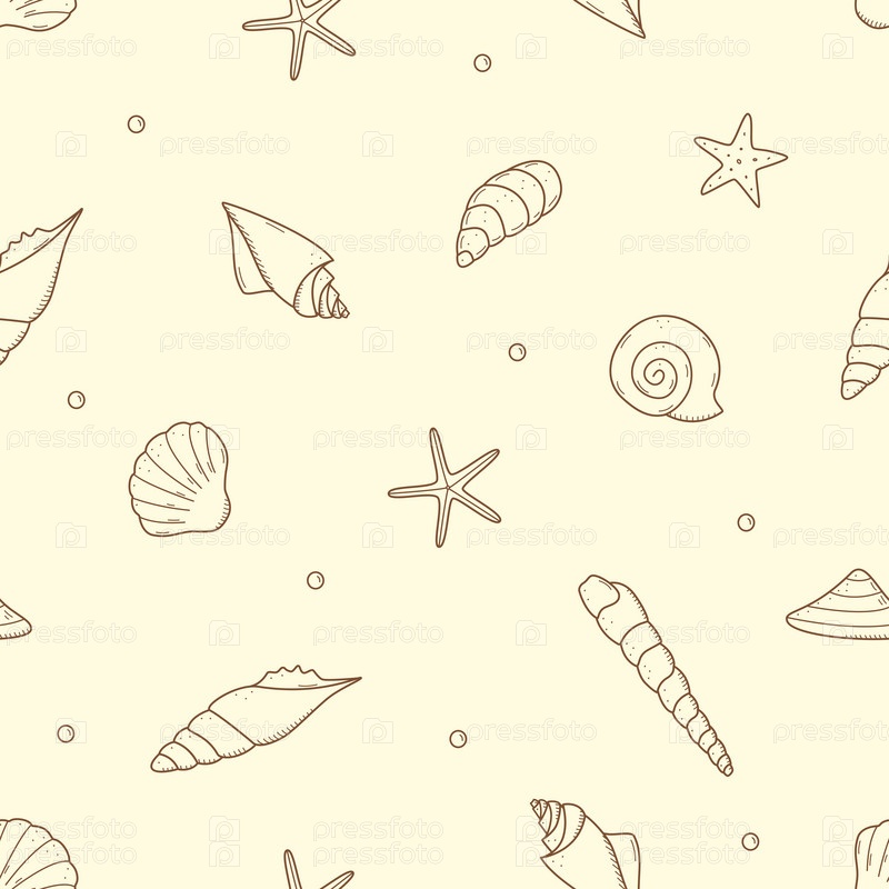Бесшовный фон из ракушек. Векторные иллюстрации текстуры обоев морской концепции