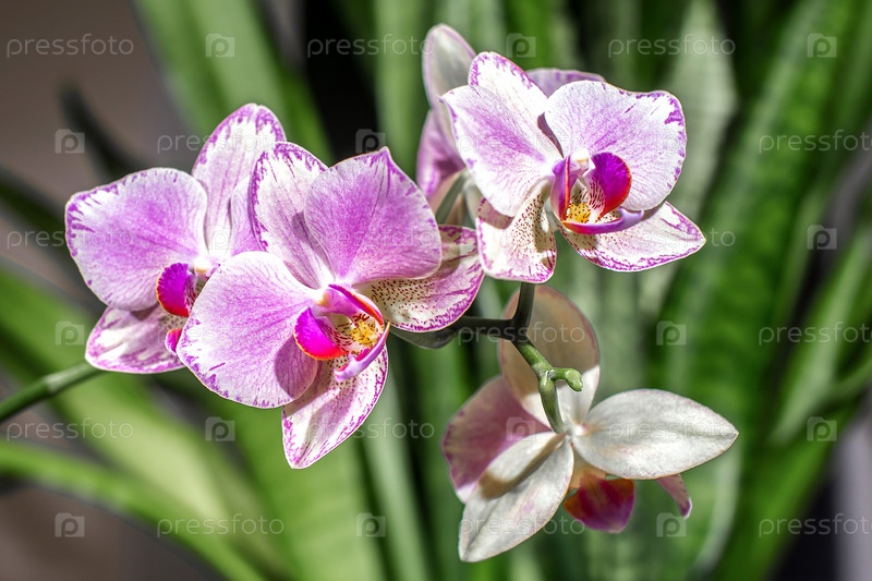 Пять цветущих бутонов розовой орхидеи сфотографированы крупным планом