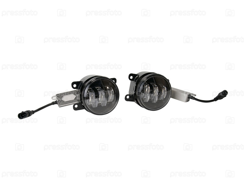 Автомобильные противотуманные фары на белом фоне