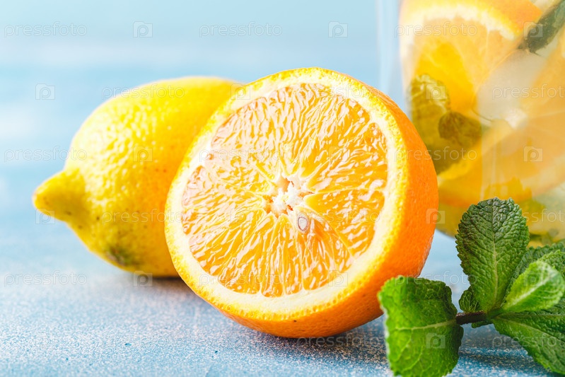Освежающие коктейли с мятой с лимоном, апельсином, мятой и льдом