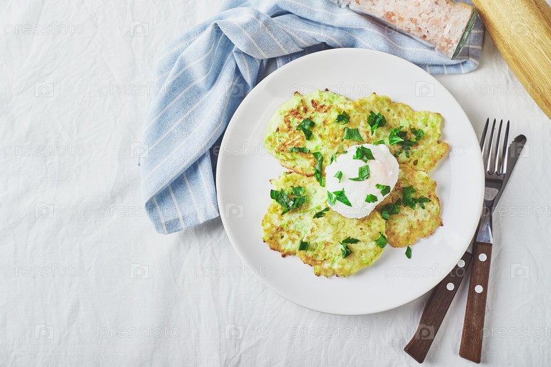 Кабачковые оладьи с яйцом пашот