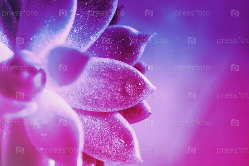 Макроснимок неоновых суккулентов с малой глубиной резкости. Завод крупным планом с розовыми и фиолетовыми огнями