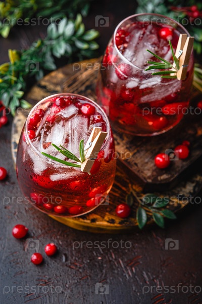 Праздничный коктейль из клюквы и розмарина со льдом. Алкогольный или безалкогольный коктейль