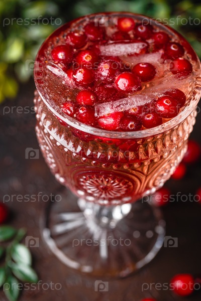 Праздничный коктейль из клюквы и розмарина со льдом. Алкогольный или безалкогольный коктейль