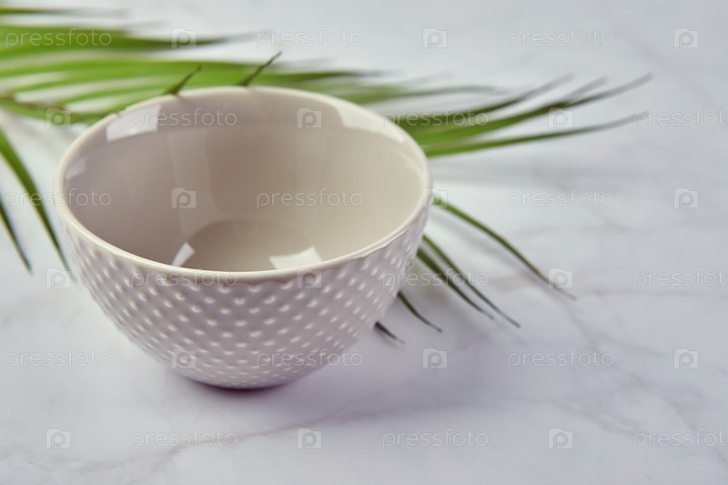 Современная модная чаша на мраморном фоне. Минималистичная композиция с посудой