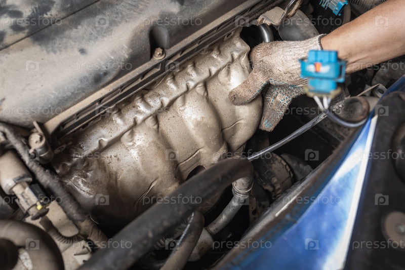 Автомеханик устанавливает защиту коллектора после технического обслуживания автомобиля