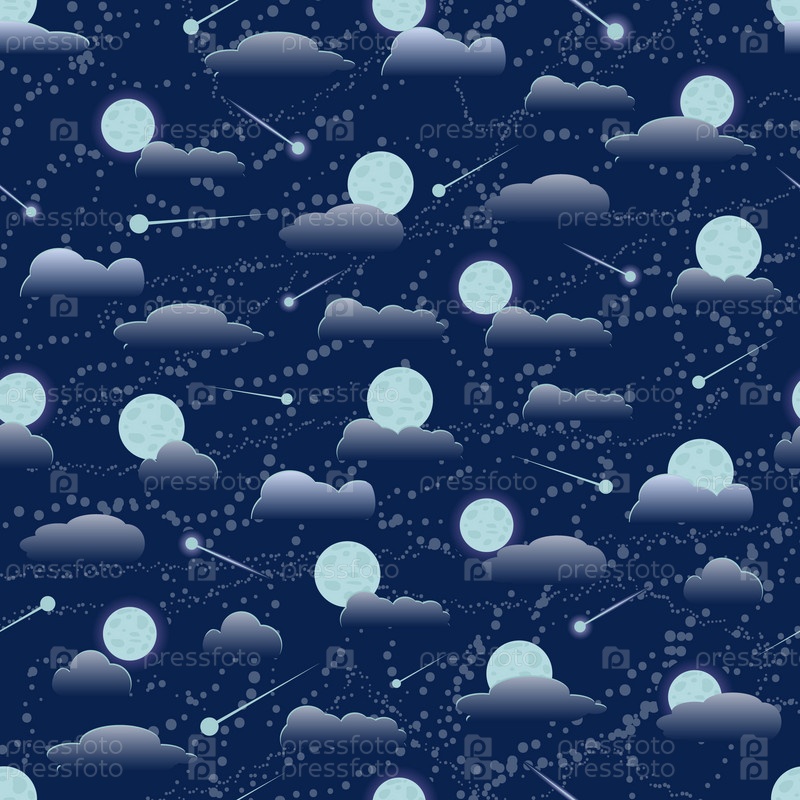 Модель Луны. Модель Луны. Облака бесшовный рисунок. Текстура для дизайна. Иллюстрация