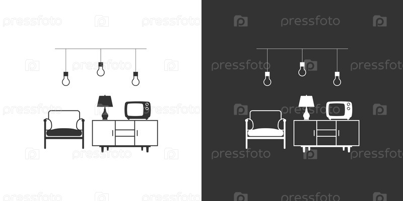 Мебельная интерьерная силуэтная иконка. Черная и белая