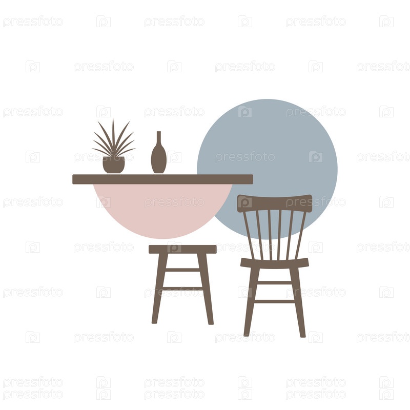 Интерьерная мебельная иконка со столом, стулом и табуреткой