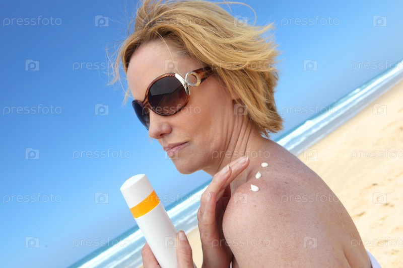 Женщина наносит солнцезащитный крем
