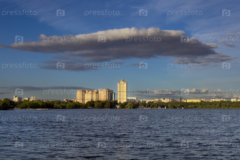Строгинский залив. Вид на жилой комплекс "Алые паруса". Москва