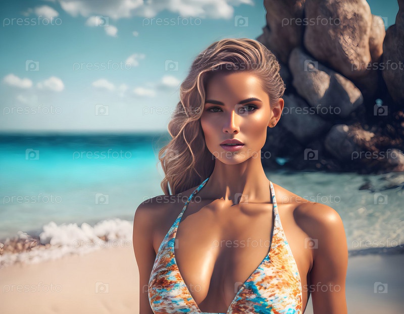 Загорелая женщина в бикини на летнем пляже