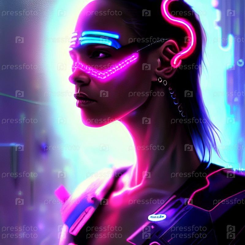 Красивая женщина-киберпанк в неоновом свете, созданная нейросетью