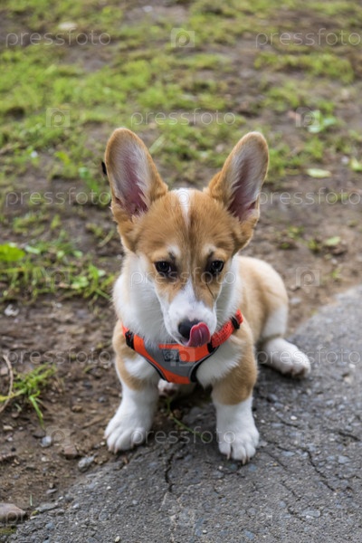 Щенок вельш-корги пемброк в парке