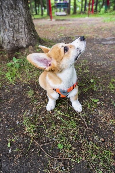 Щенок вельш-корги пемброк в парке
