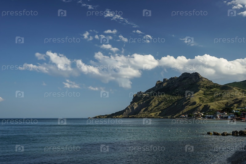 Морской пейзаж с видом на горы в Коктебеле. Крым, Россия