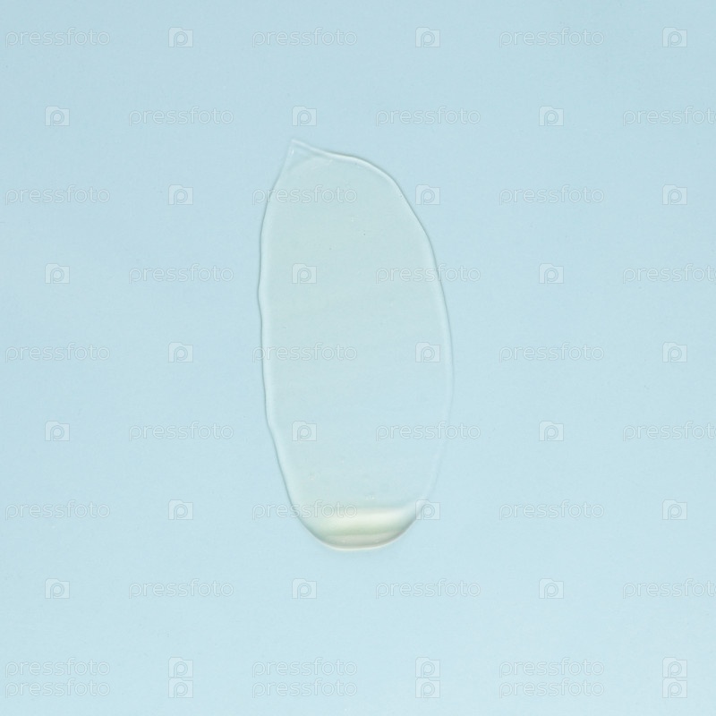 Мазок прозрачного крема для лица и тела на синем фоне