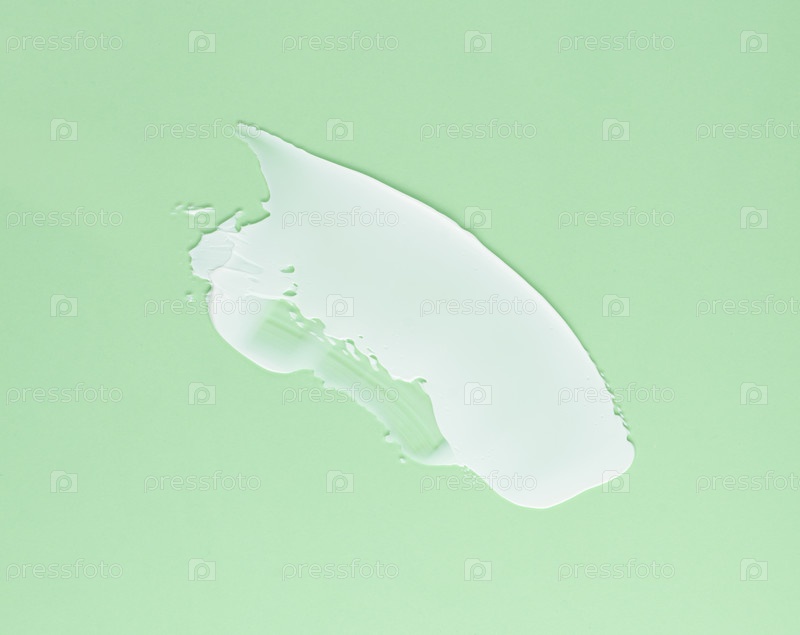 Мазок белого крема для лица и тела на зеленом фоне
