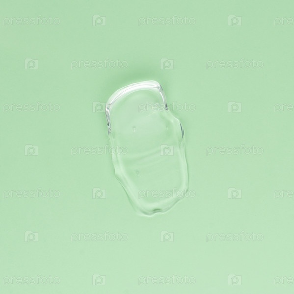 Мазок прозрачного крема для лица и тела на зеленом фоне