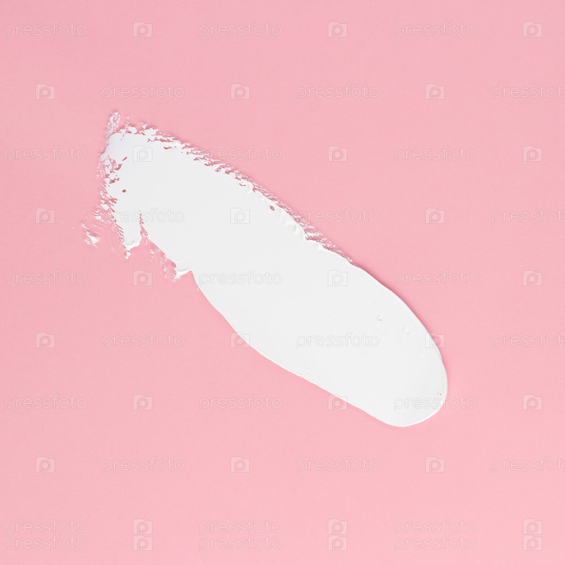 Мазок белого крема для лица и тела на розовом фоне