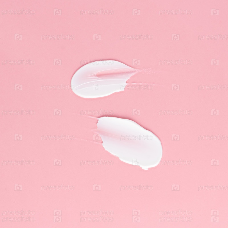 Мазок белого крема для лица и тела на розовом фоне