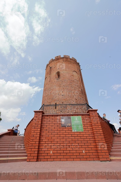 Башня Белая Вежа. Из красного кирпича. На фоне неба
