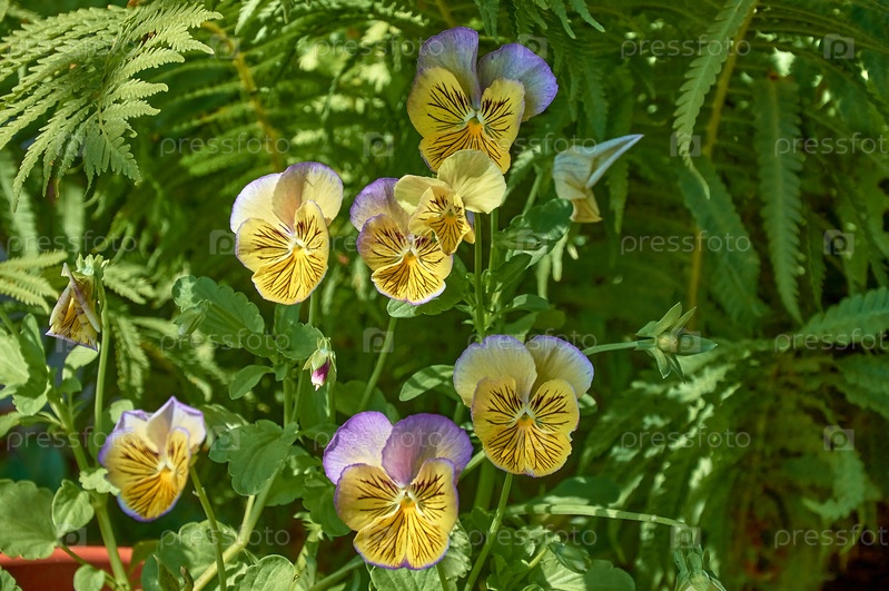Двухцветные анютины глазки, рогатая фиалка в саду