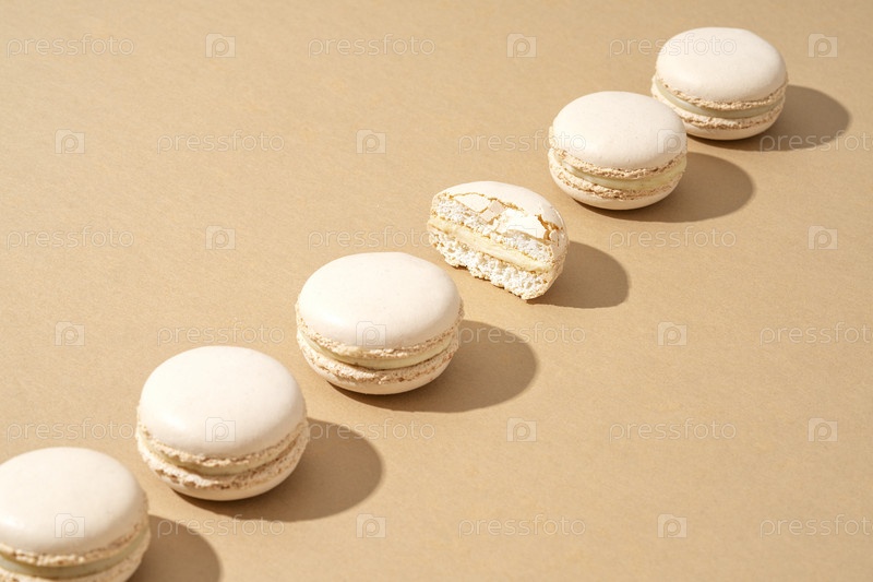 Натюрморт с шестью белыми макаронами, сложенными стопкой друг над другом