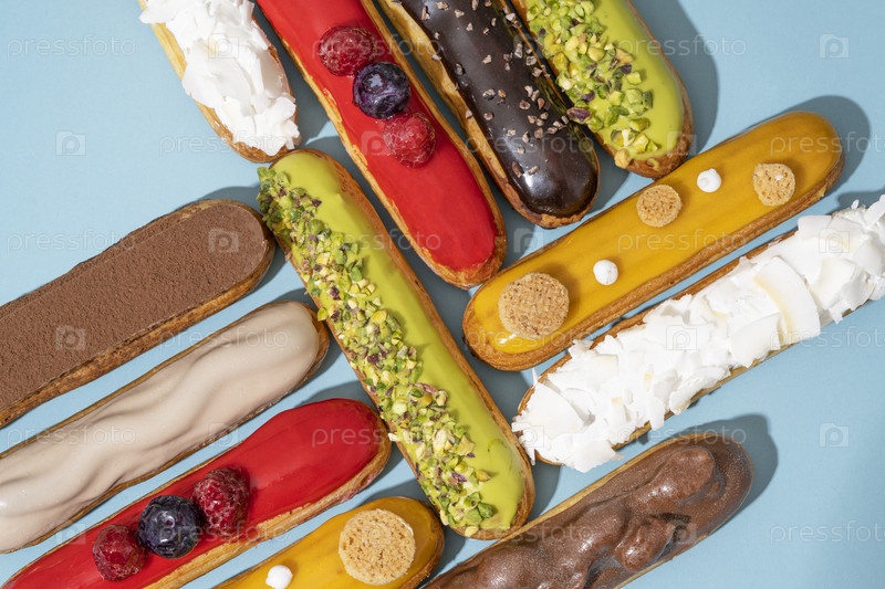 Праздничная композиция из разнообразных пончиков, украшенных разноцветной посыпкой и глазурью