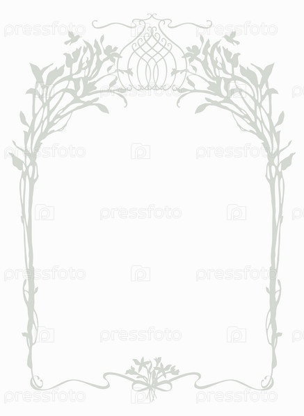 Декоративный силуэт в винтажном стиле. Рамка в виде арки, с цветочными веточками, птичками и лентами. Орнаментальный силуэт в старинном стиле. Рама в виде арки, с цветочными веточками, птичками и лентами