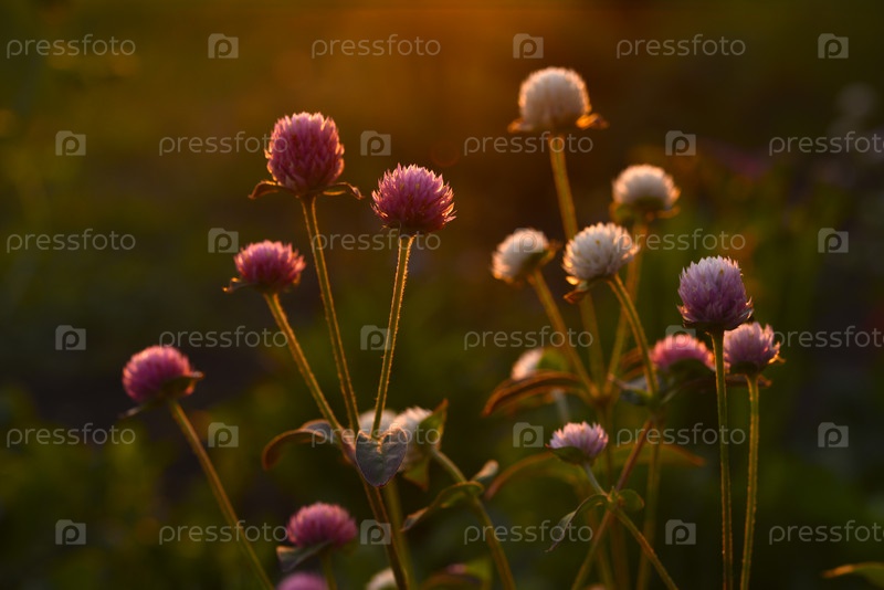 Цветы клевера лугового в солнечном свете. Луговой клевер в лучах заходящего солнца