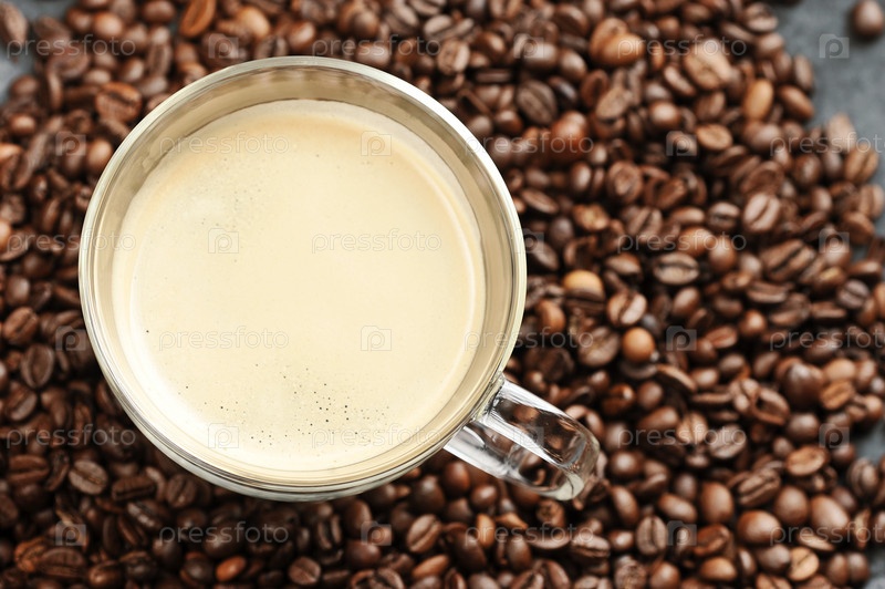 Чашка с кофе и кофейными зернами