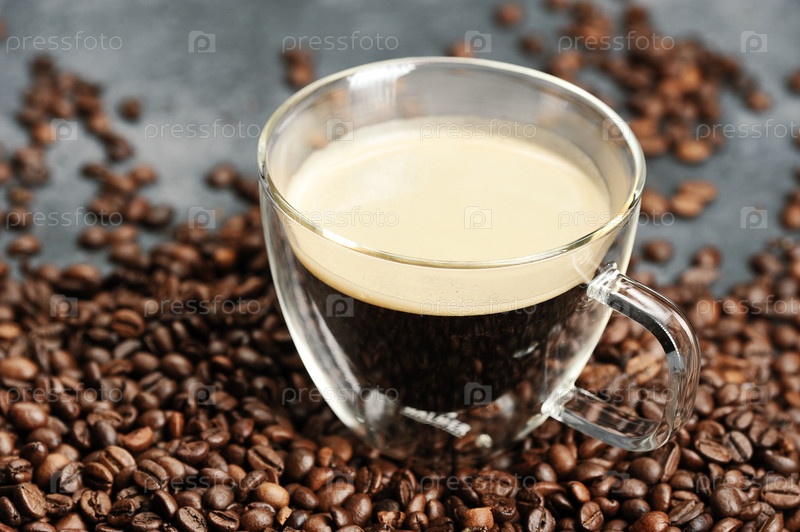 Чашка с кофе и кофейными зернами