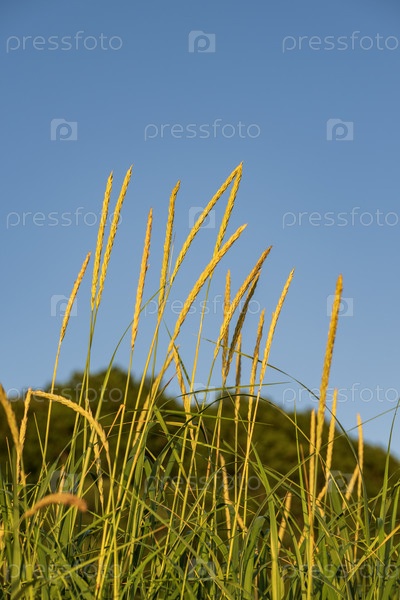 Трава в поле на фоне голубого неба