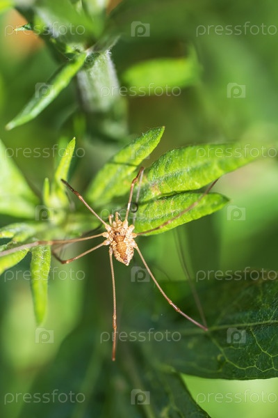 Паук на зеленом листе в саду
