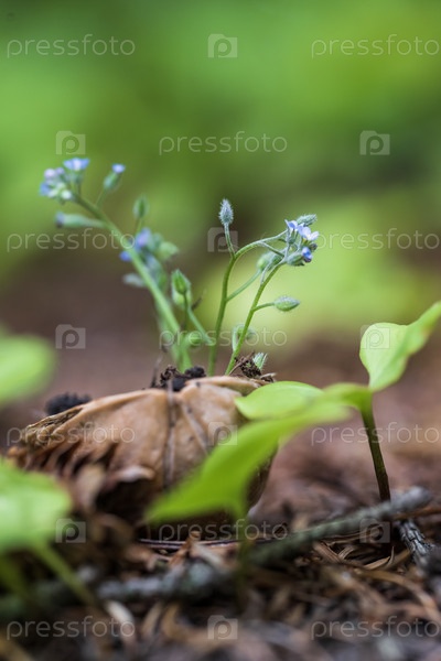 Маленькие голубые цветочки, растущие в лесу