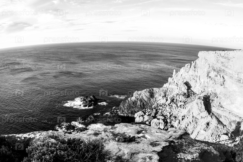 Черно-белое побережье на закате, Южная Австралия, остров Кенгуру. Изображение рыбьего глаза