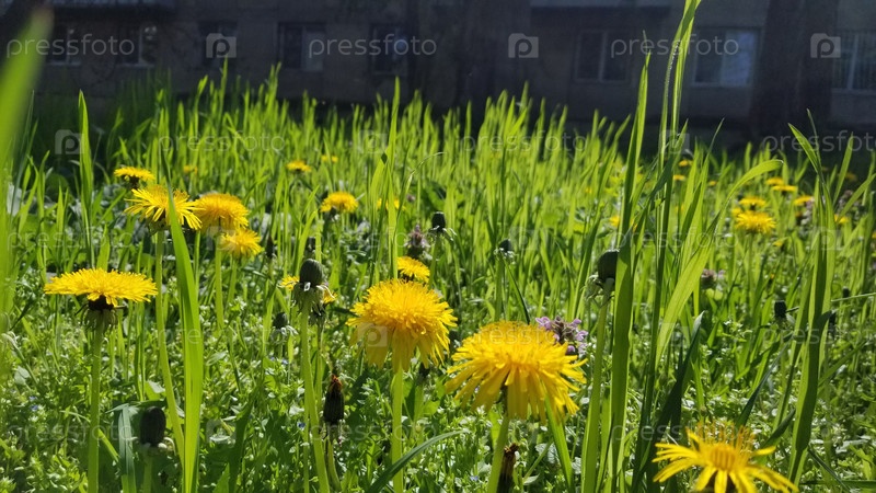Лето, поле, одуванчики, зеленый луг