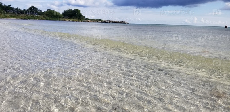 Красивый морской пейзаж, темное небо, прозрачная вода
